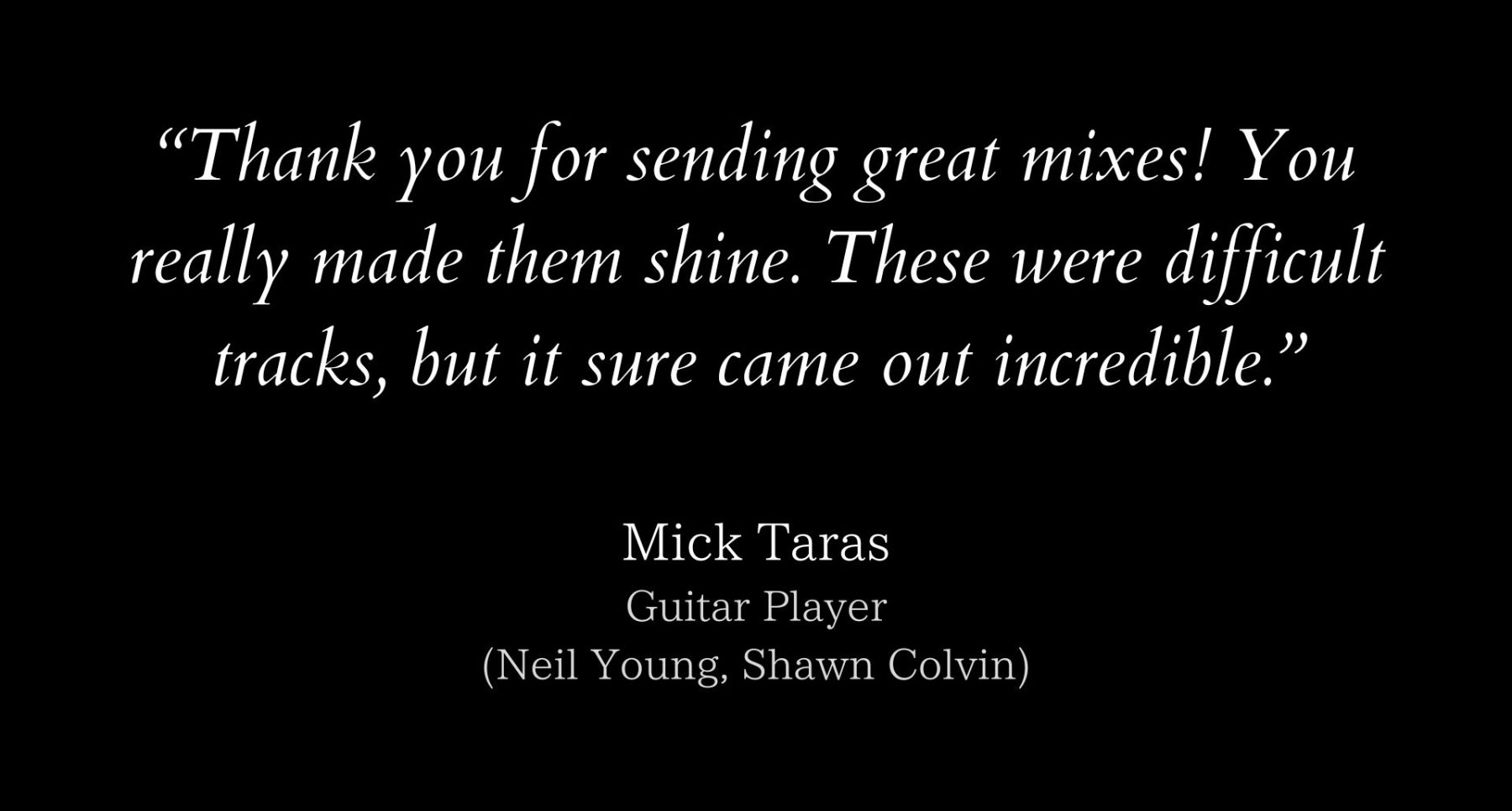 Whether it’s recording, mixing, guitar playing or producing, whatever your request, I guarantee the best results.